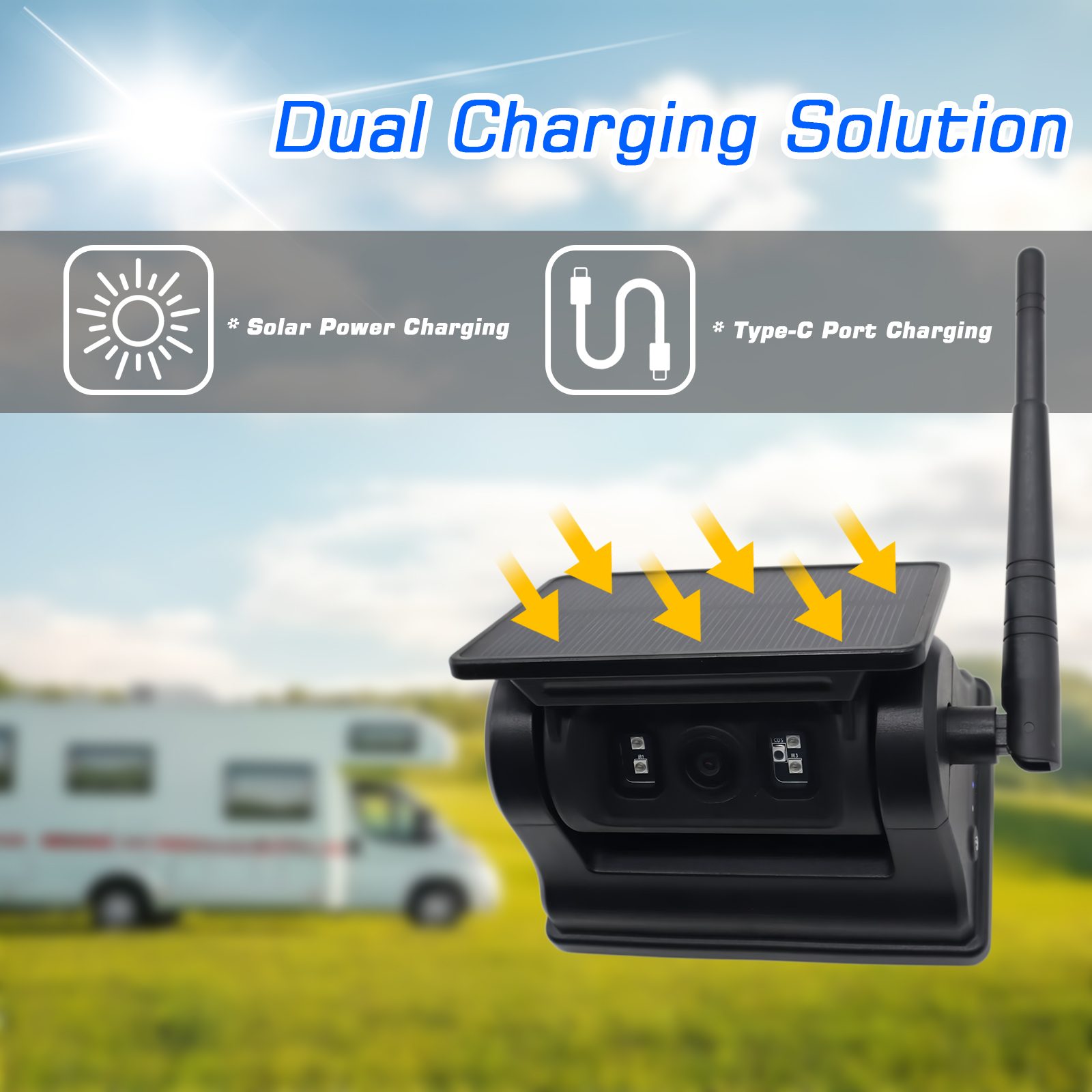 Solarna energija: vgrajena 10500 mAh polnilna baterija velike zmogljivosti, podpira sončno napajanje in polnilna vrata Type-C za ponovno polnjenje