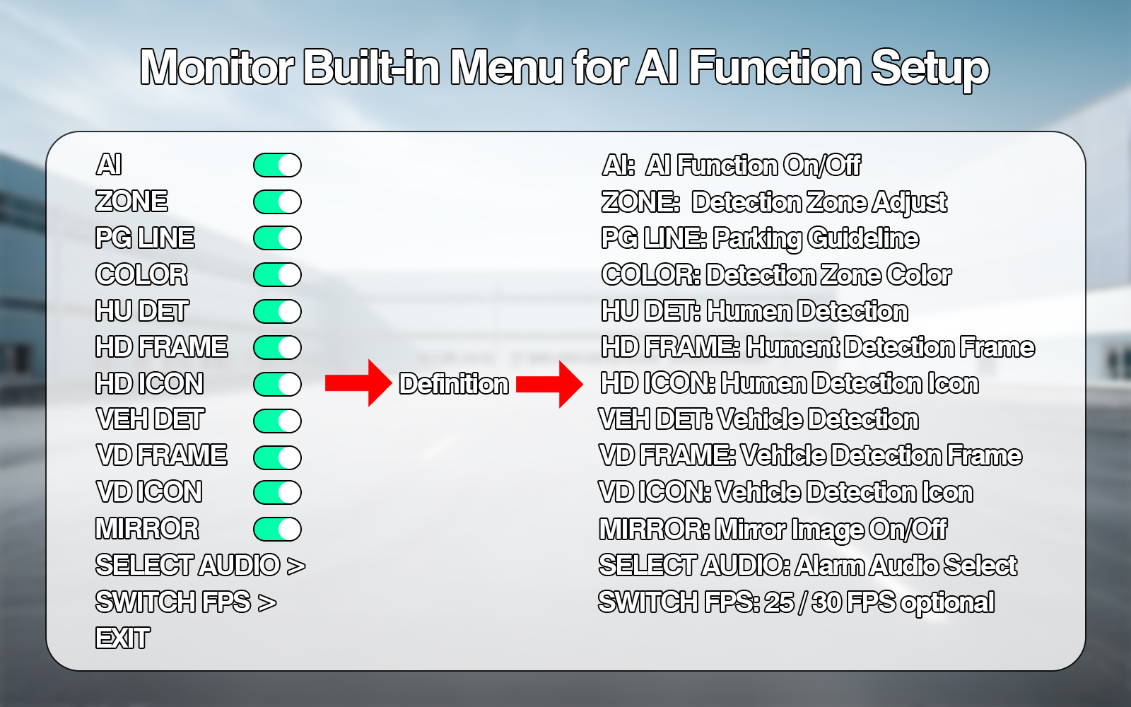 4. Monitor Podpora inteligentno prilagodite vse funkcije, kot je AI BSD kamera Slepa območje Opozoritvenega območja.