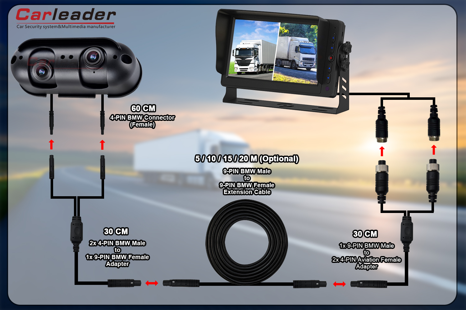 Carleaderbo ponudil dve različni rešitvi ožičenja za kamero za vzvratno vožnjo z dvojno lečo Starlight AHD, ki bo ustrezala različnim potrebam ožičenja:
