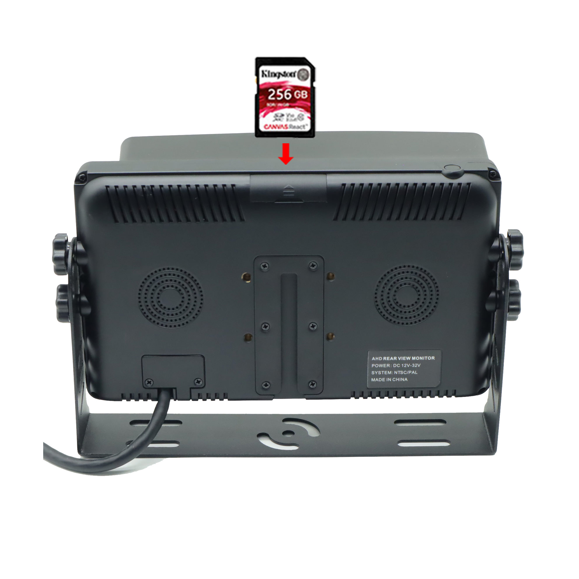 Carleader 7-palčni 4CH AHD vhodi Quad View Display Monitor podpira funkcijo snemanja DVR, z režo za kartico SD na zadnji strani monitorja, največja zmogljivost je do 256 GB. Funkcije s funkcijo snemanja v zanki, lahko samodejno snema video in predvajanje s kamere.