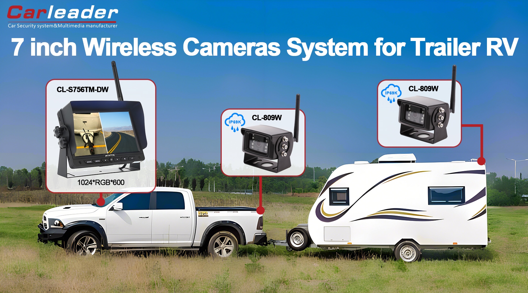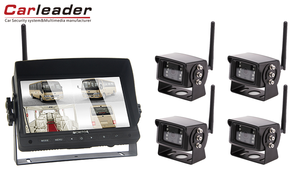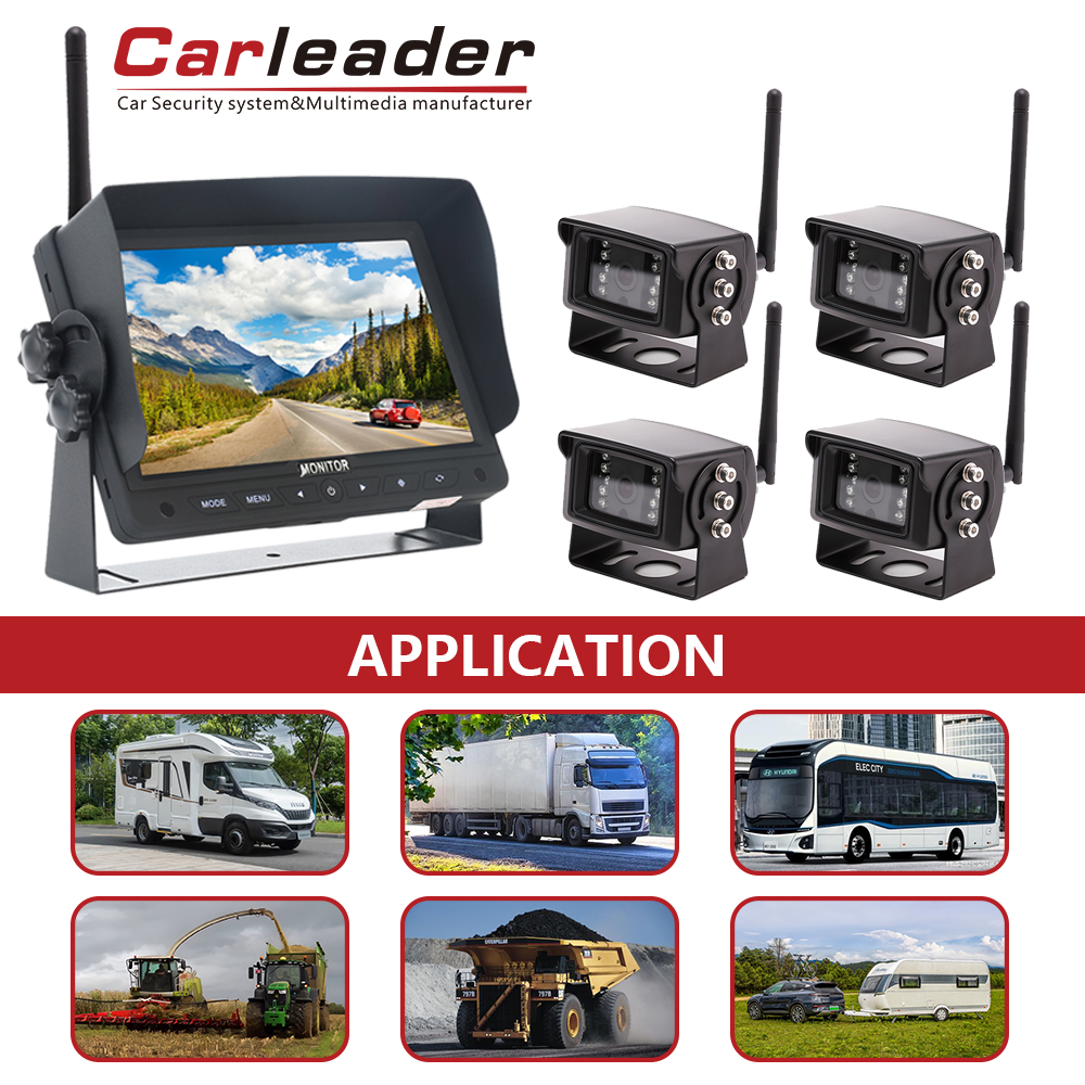 Carleader7-palčni 2.4G digitalni brezžični 2CH sistem kamer z razdeljenim zaslonom, visoko zmogljiv brezžični sistem za spremljanje s podporo za pogled na 2 drsnih zaslonih, primerljiv z 2-delnima brezžičnima kamerama. 7-palčna digitalna plošča, razmerje slike 16 : 9, ločljivost 1024 x 600 (RGB), vozniku zagotavlja visoko jasnost pri vožnji.
